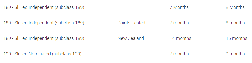 只提供了188A的申请时间。20-21个月。其他签证都没有时间。