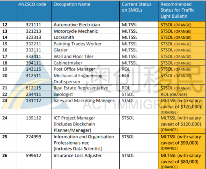 根据建议,一些trade的职业将可能从M列表转入S列表中,不过也有从偏远地区职业清单中划入S列表的,比如房地产销售 Real Estate Representative 。另外Manager 级别的职位如Sales and Marketing Manager, ICT Project Manager等有可能转移到M列表中,不过会有额外12万年薪的特殊要求。