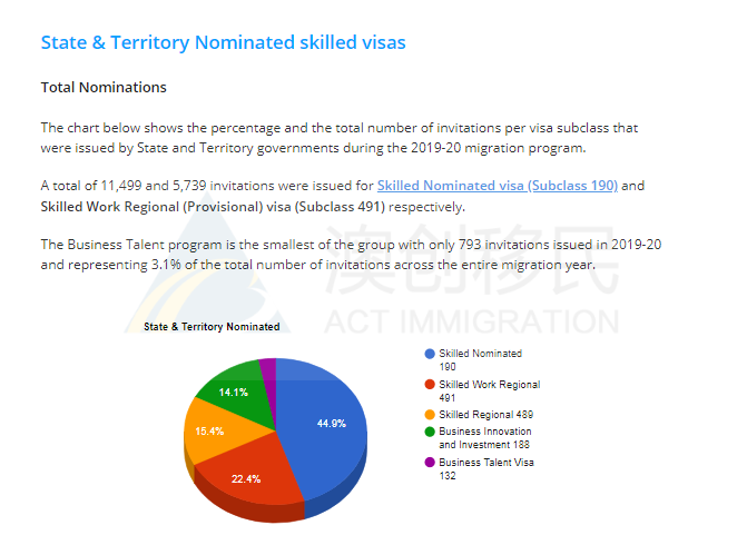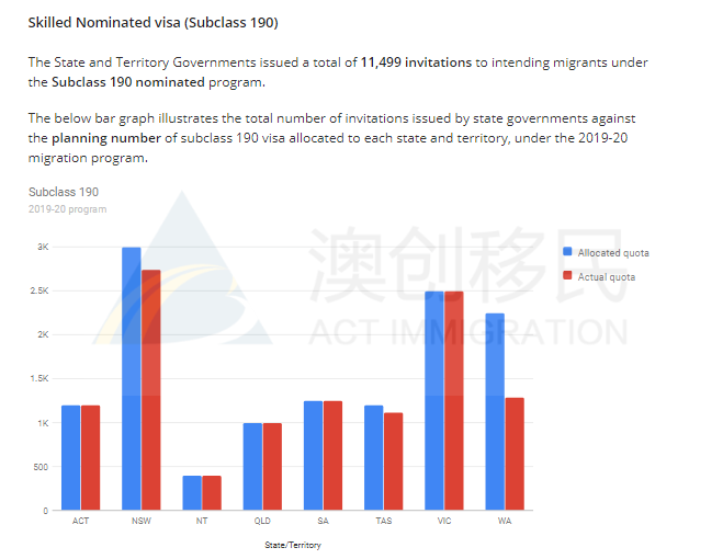 19-20财年,澳大利亚各种一共发放了11499个190(州担保)的配额和5739个491(偏远地区担保)的配额: