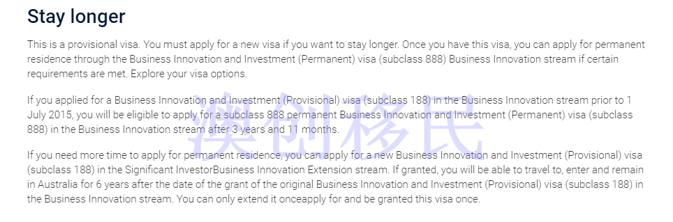 188A类的extension是可以延期两年的,也就是说我们常说的188a类是一个4年的签证,满足投资和经营的时间以及营业额之后可以申请888类签证。如果在这4年内没有符合对应的888类签证申请的条件的话可以申请一次延期(只能申请一次,且此次延期的签证到期时间是在首个188a类签证到期后的6年后截止);