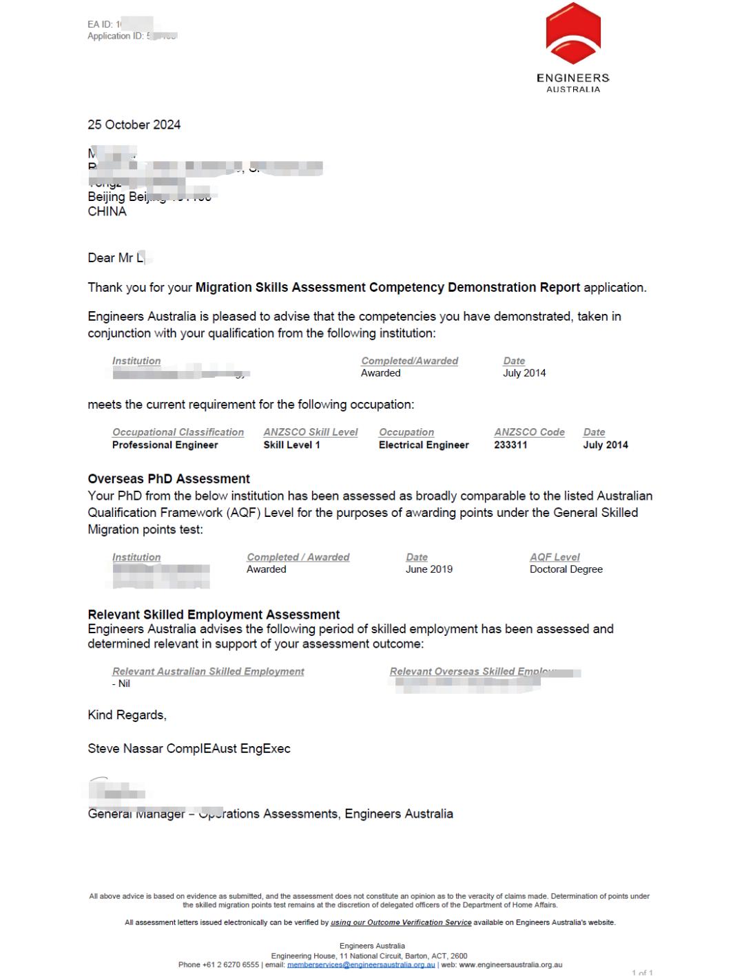 L先生,最高学历博士,本科和博士都属于电气工科,但因为学历都不属于华盛顿认证的学历,只能通过CDR通道申请评估。